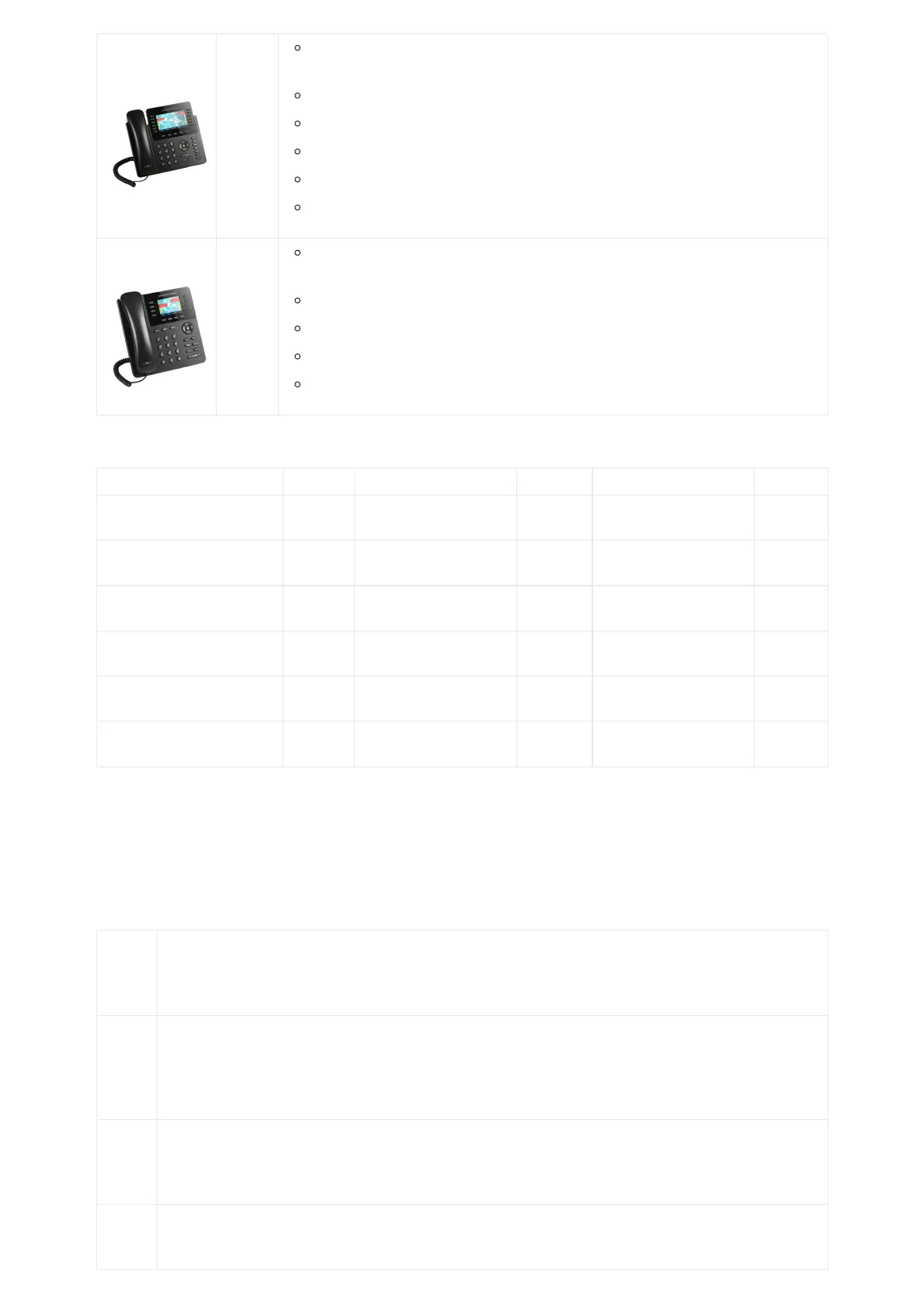 Table 2: GXP2130/GXP2140/GXP2160/GXP2170/GXP2135 Comparison Guide