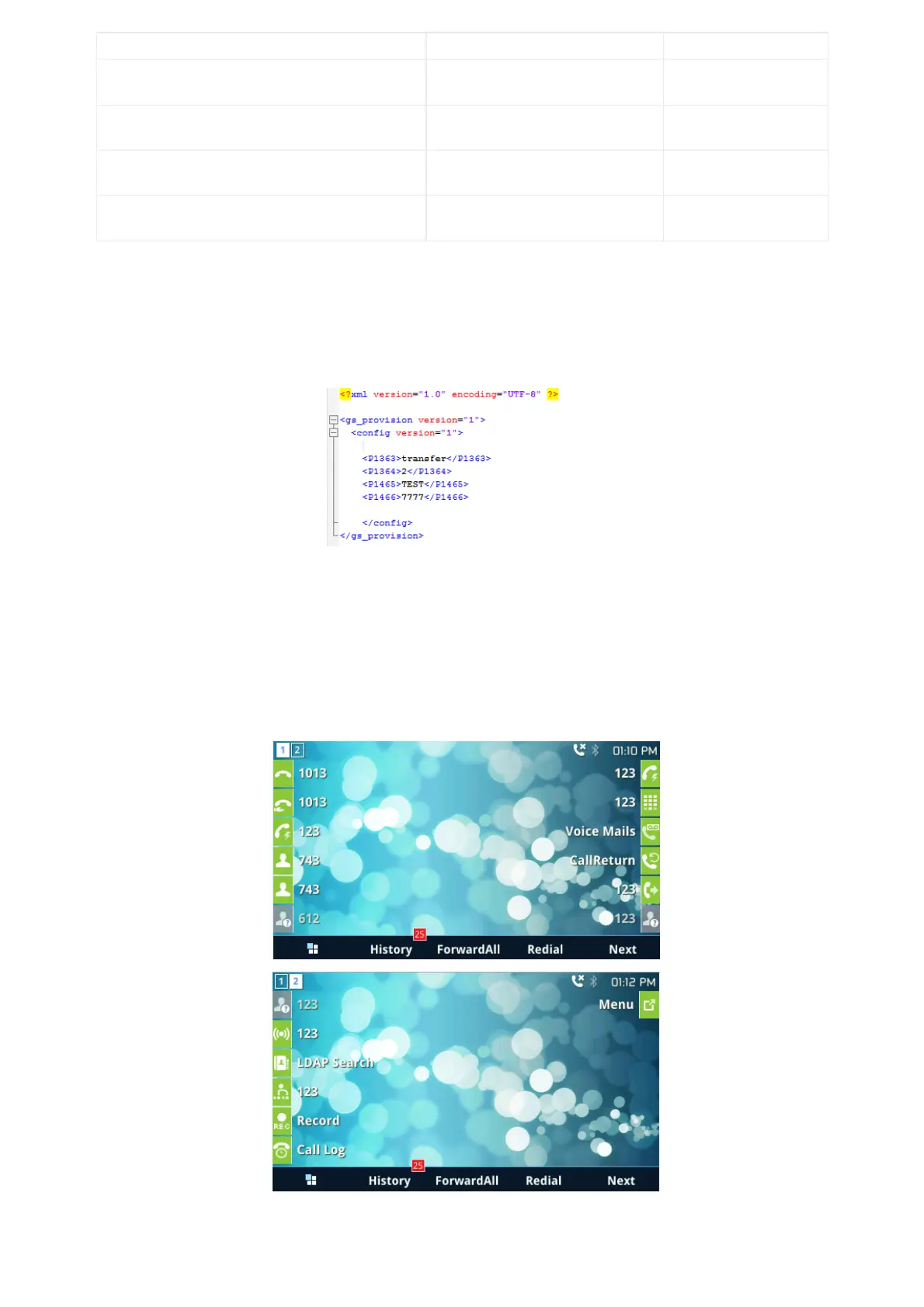 The following figures show page 1 and page 2 of the VPKs on LCD. Pressing “RIGHT” arrow key or “Next” softkey will switch to