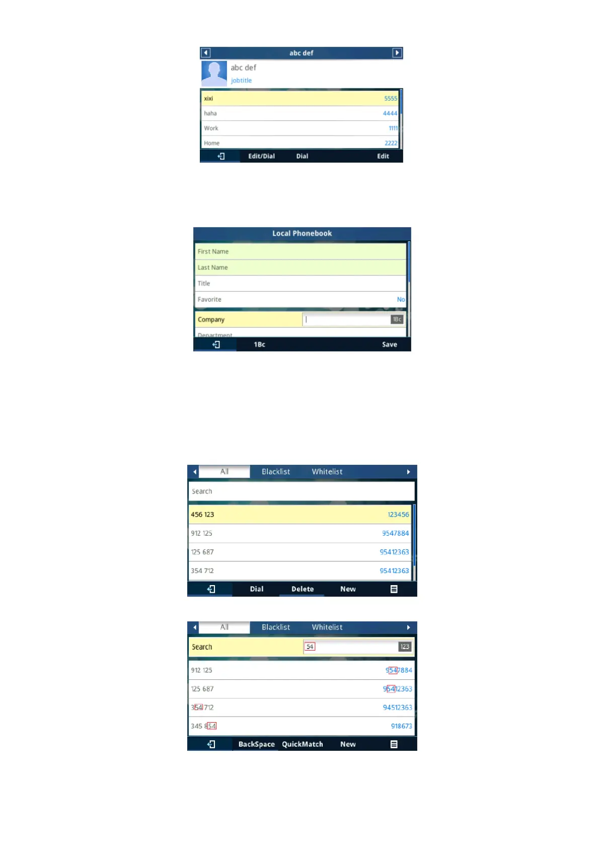 User can also input the “Company” “Title” “Job” filed through the phonebook.xml in the previous example or on the LCD of