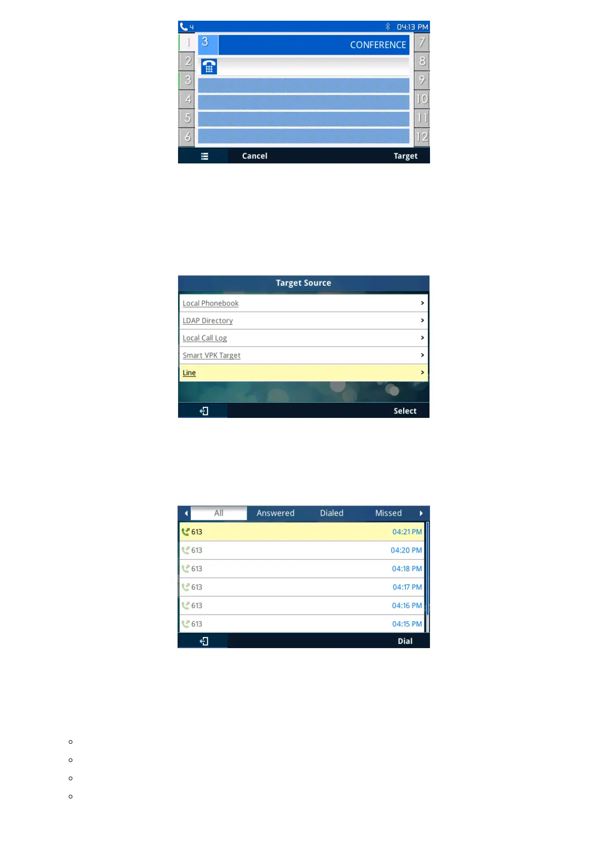 When clicking on the softkey, it will take user to a target selection page in which user can choose other possible