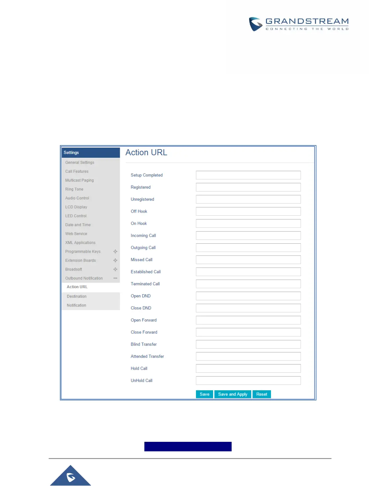 web UI, there are three sections under Outbound Notifications: “Action URL”, “Destination” and