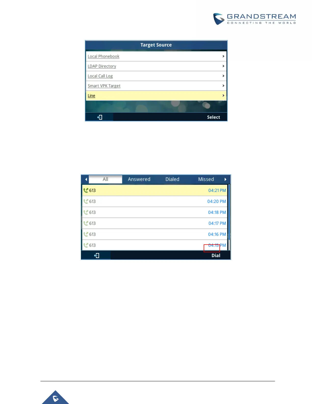 target. By selecting Local/Broadsoft Phonebook, Local/Broadsoft Call Log and LDAP Directory, LCD will