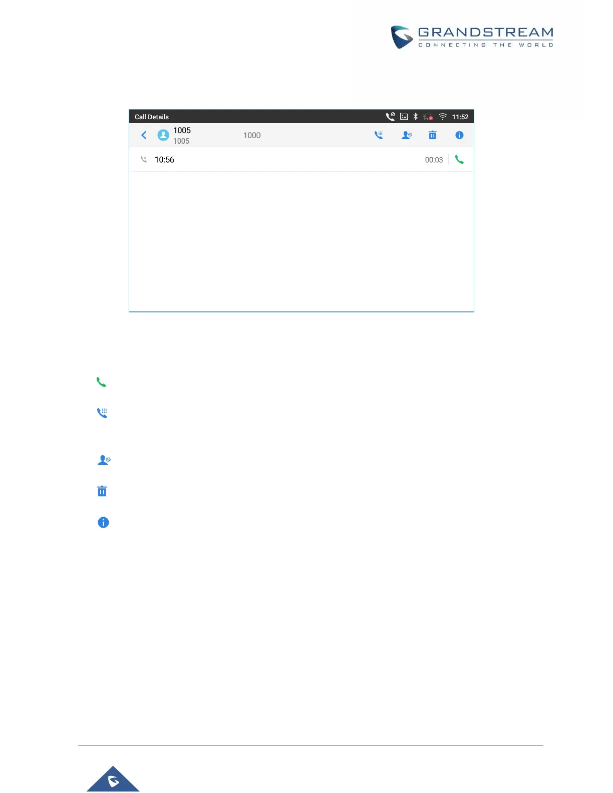For each call history entry, users could tap on the entry to access the details.