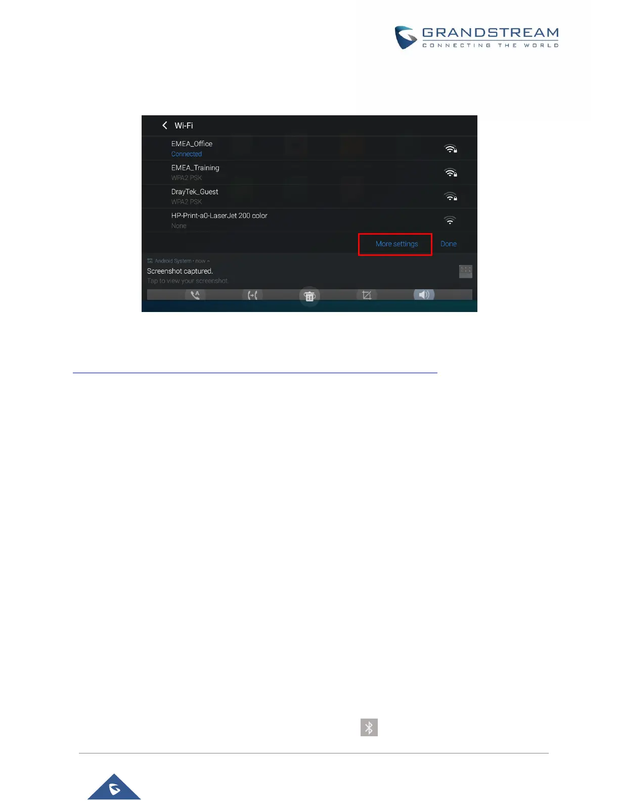 Press the letter under Wi-Fi icon this will show the list of the Wi-Fi networks detected. Press “More Settings”