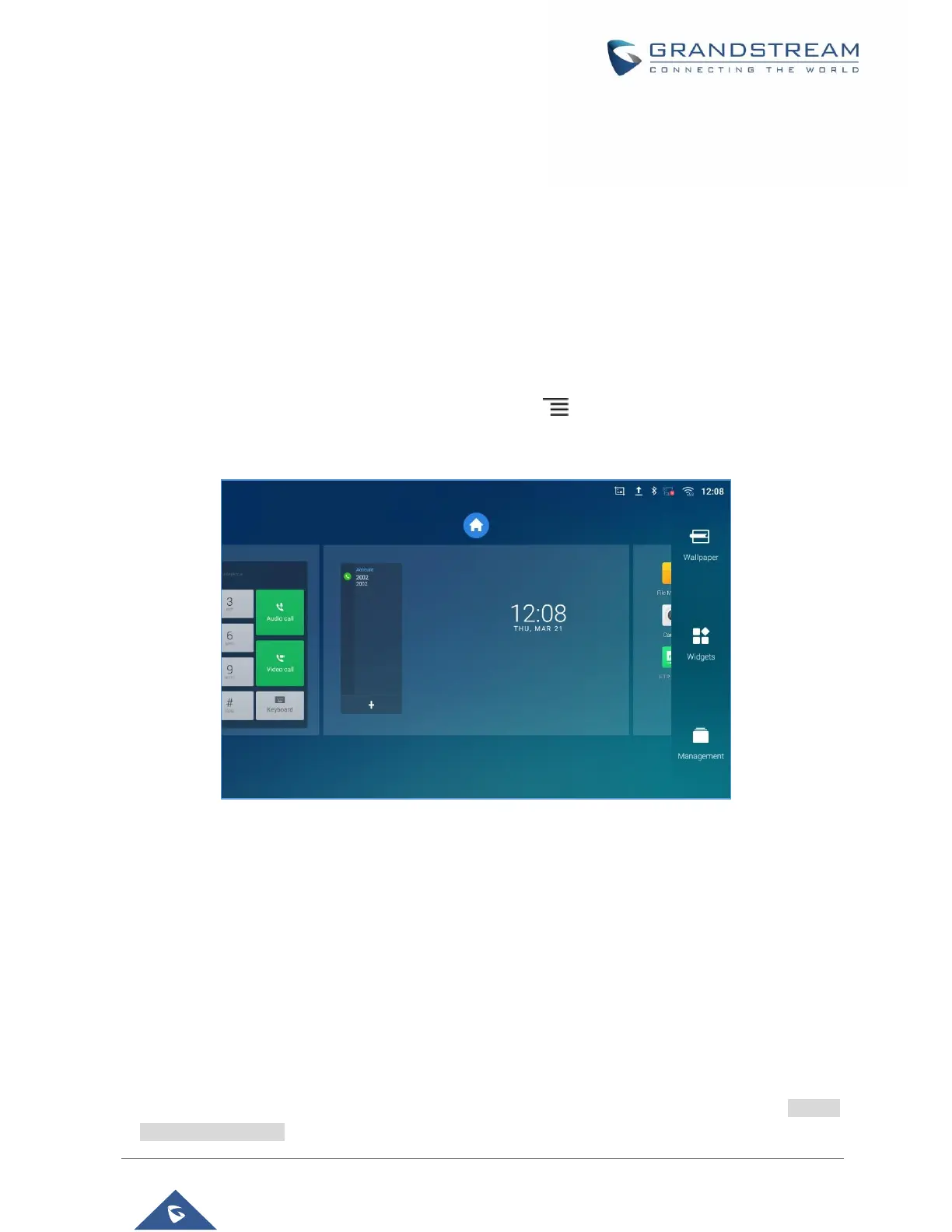 When the GXV3380 is on idle screen, press the MENU key to bring up phone's menu. Users can