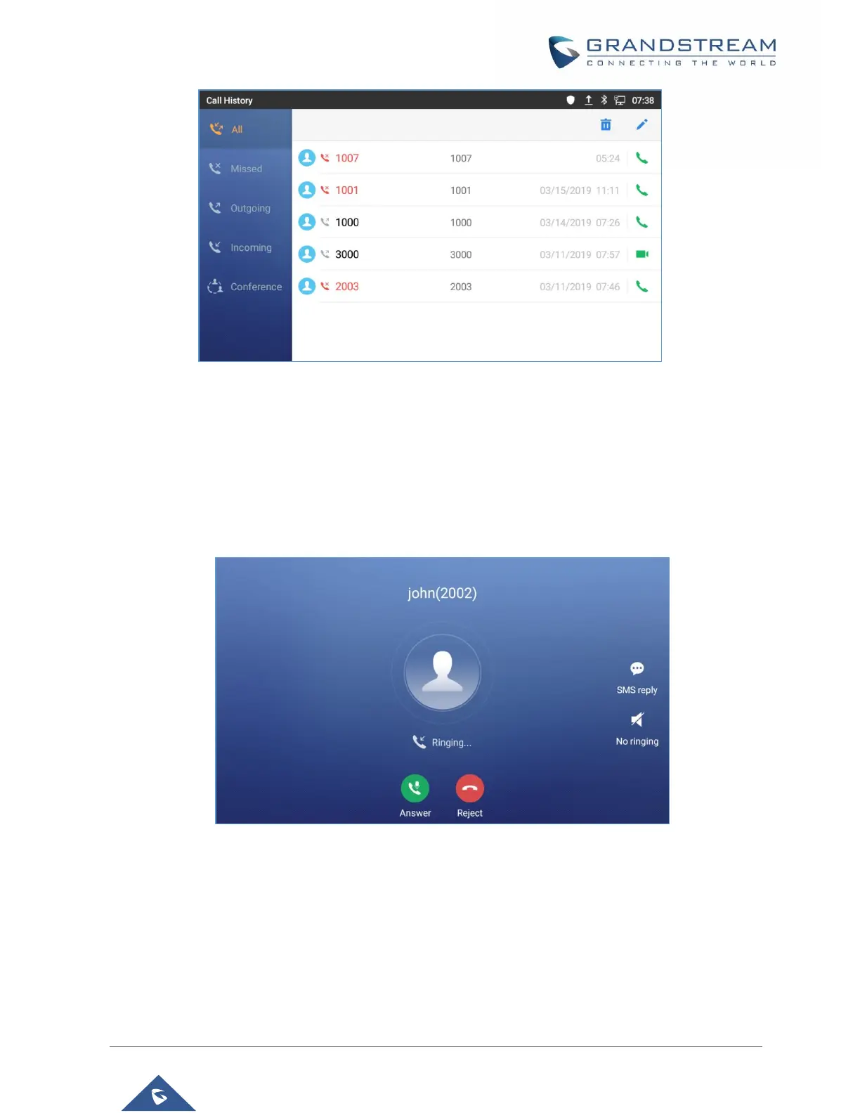 below. Tap on "Answer" softkey to answer the call via speaker or pick up the handset the answer the