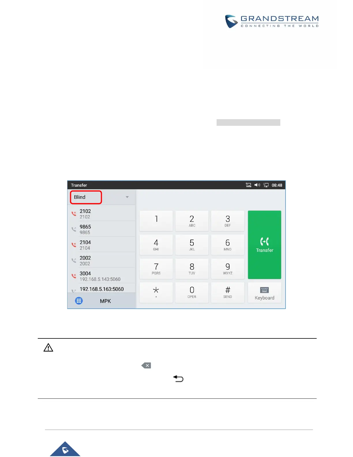 3. Select transfer mode as "Blind" by tapping on the highlight area in [Figure 54: Blind Transfer]. The default