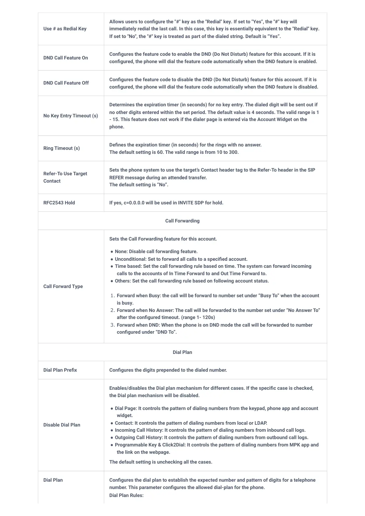 ● Dial Page: It controls the pattern of dialing numbers from the keypad, phone app and account
