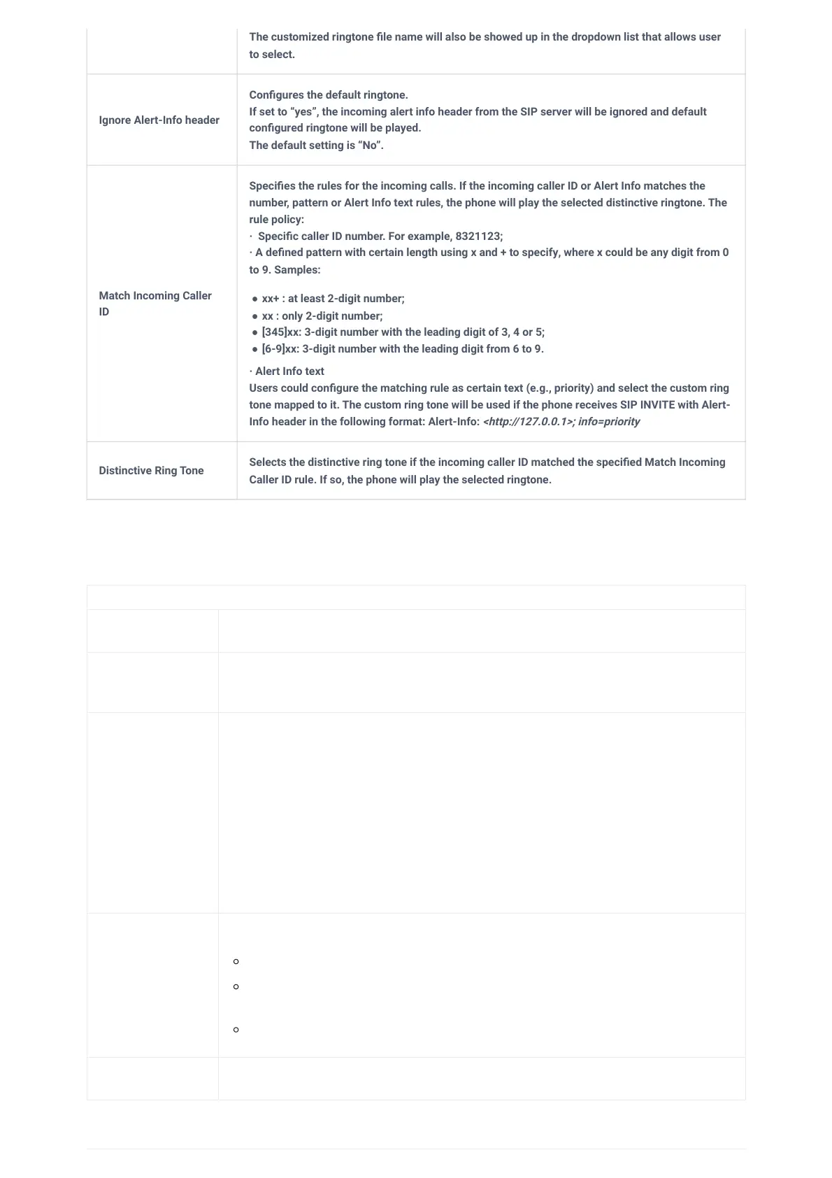 tone mapped to it. The custom ring tone will be used if the phone receives SIP INVITE with Alert-