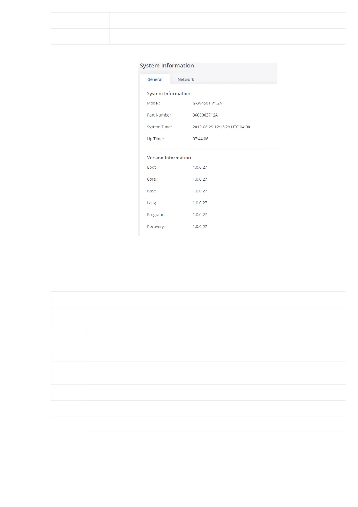 Under Web GUI🡪System Status🡪System Information🡪Network, users could check the network information for the GXW450X. Please see the d