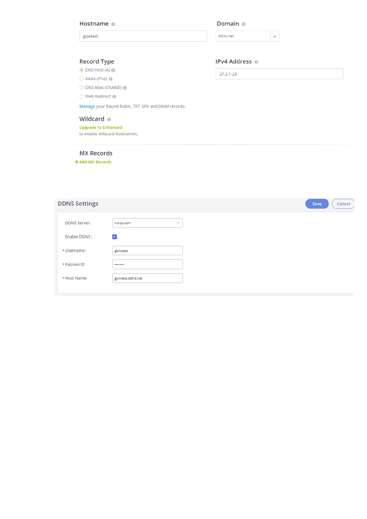 2. On Web GUI🡪System Settings🡪Network Settings🡪DDNS Settings, enable DDNS service and configure username, password, and hostnam