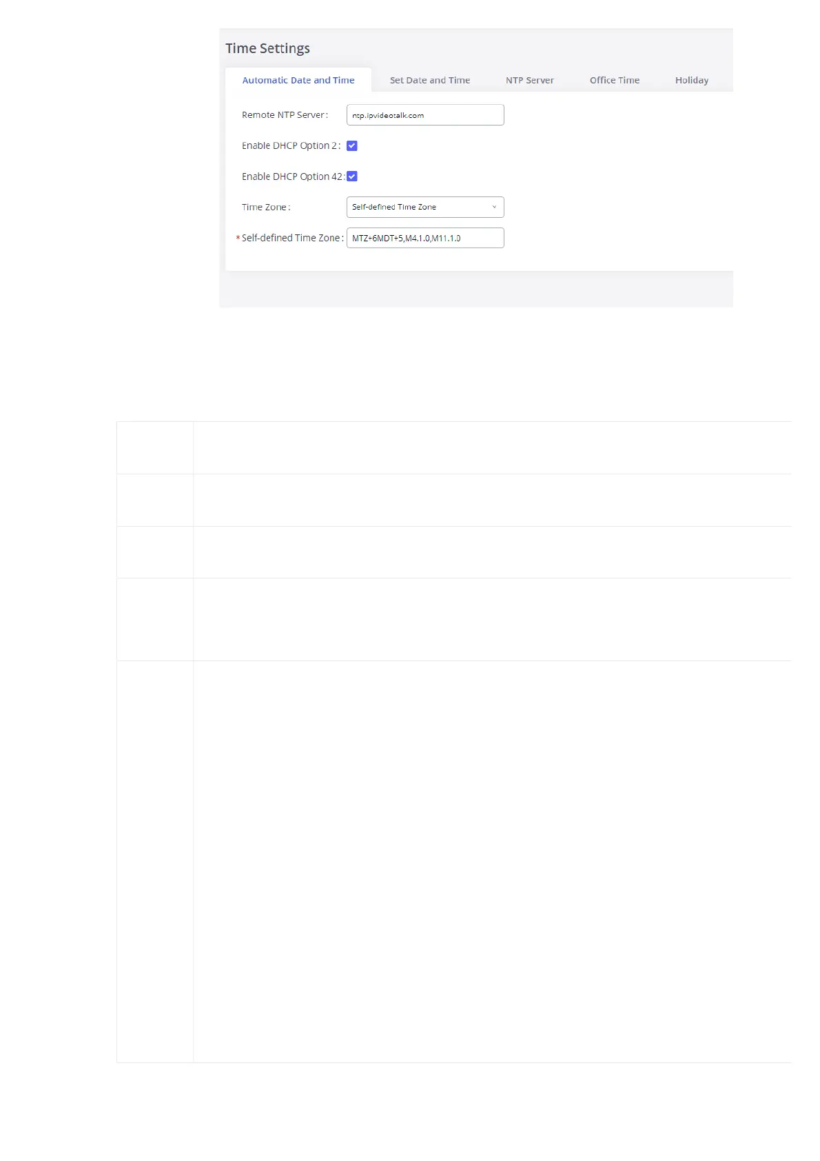 If “Self-Defined Time Zone” is selected in the “Time Zone” option, users will need to define their own time zone following the for