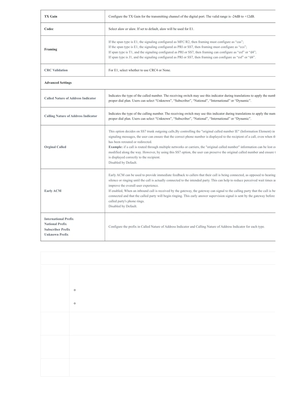 proper dial plan. Users can select “Unknown”, “Subscriber”, “National”, “International” or “Dynamic”.