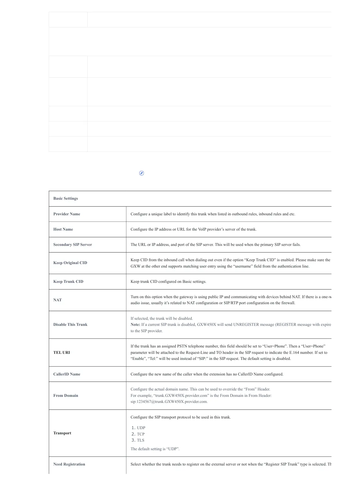 Note: If a current SIP trunk is disabled, GXW450X will send UNREGISTER message (REGISTER message with expire