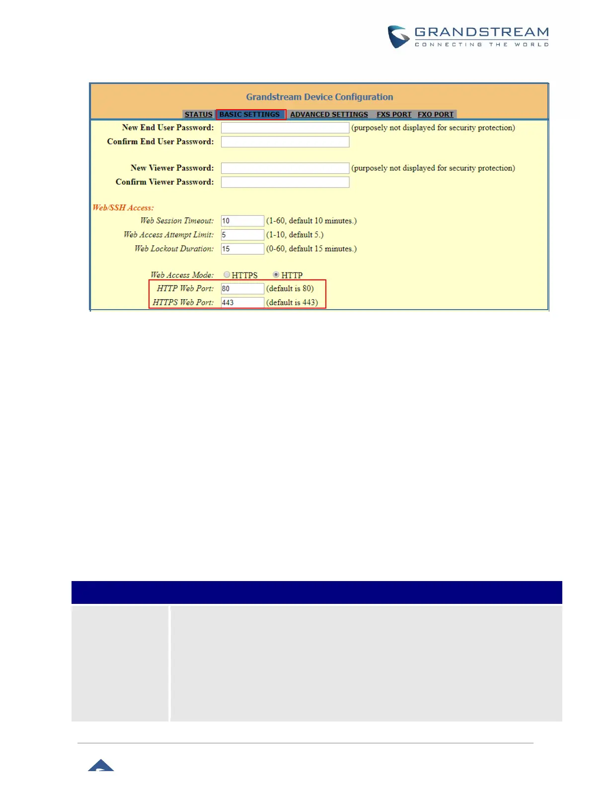 BASIC SETTINGS: Configures the end user level password, IP address modes, web access, time