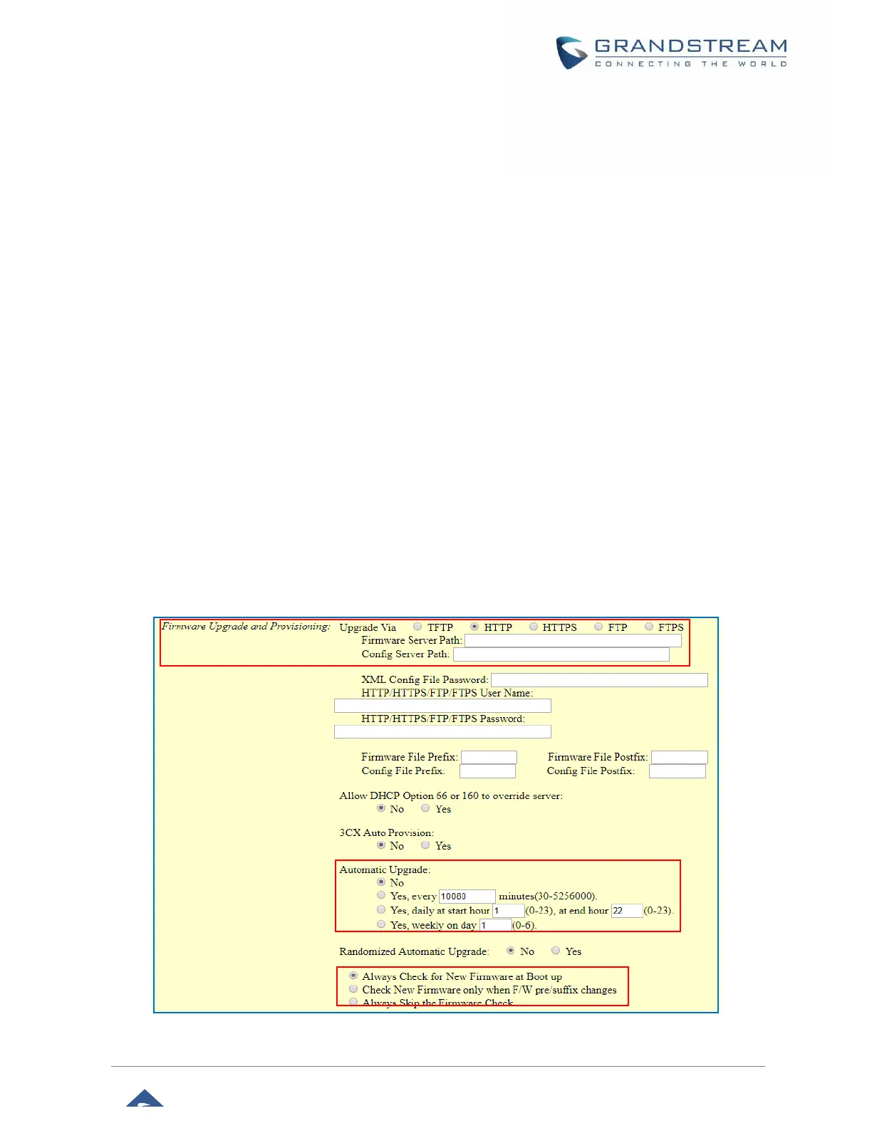 address or the FQDN for the upgrade server in "Firmware Server Path" field and choose to