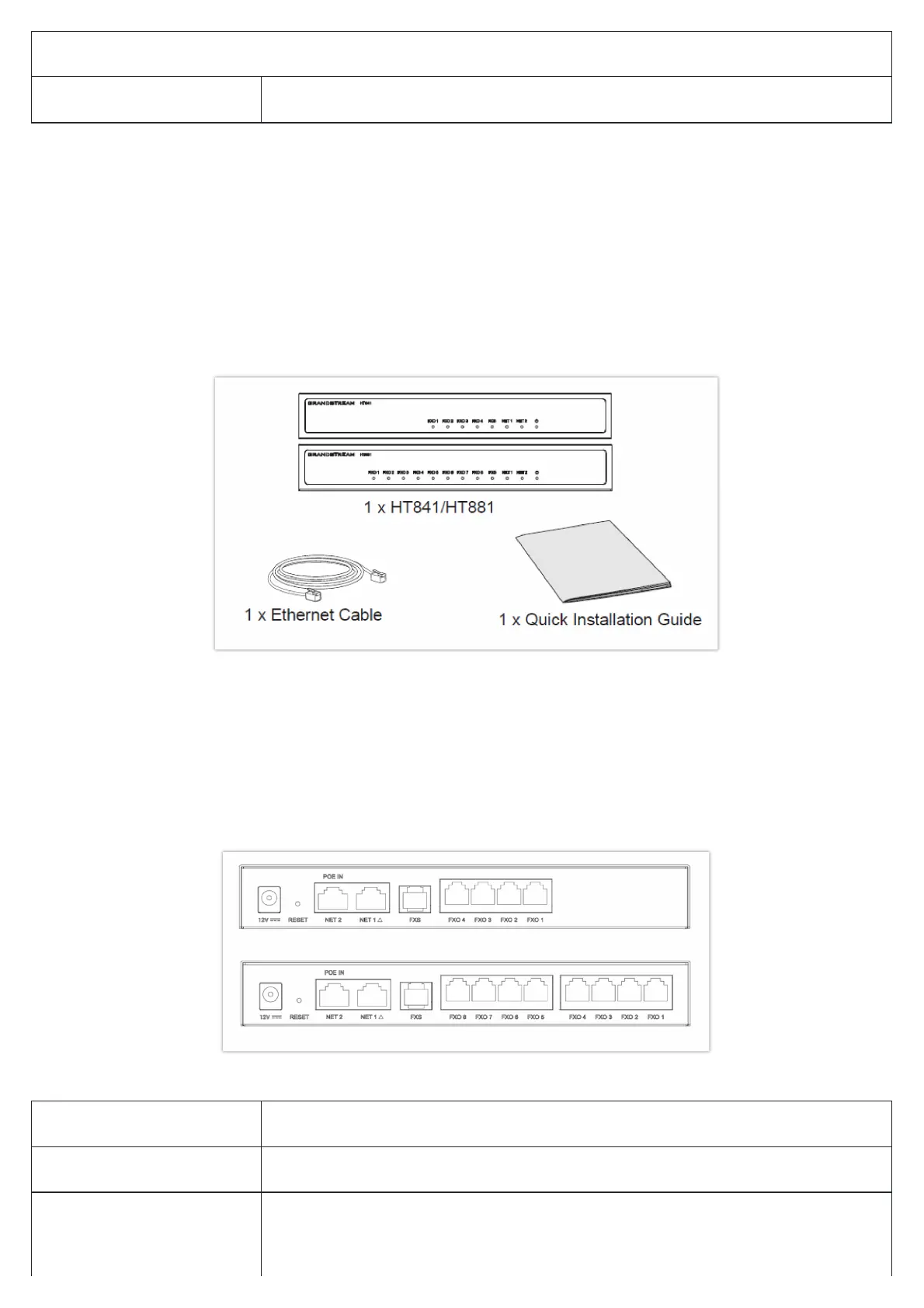 The following figure describes the different ports on the back panel of the HT841/HT881.