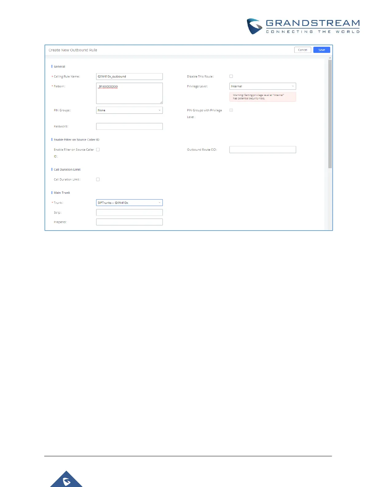 Figure 3: Configure Outbound Rule on the UCM6XXX