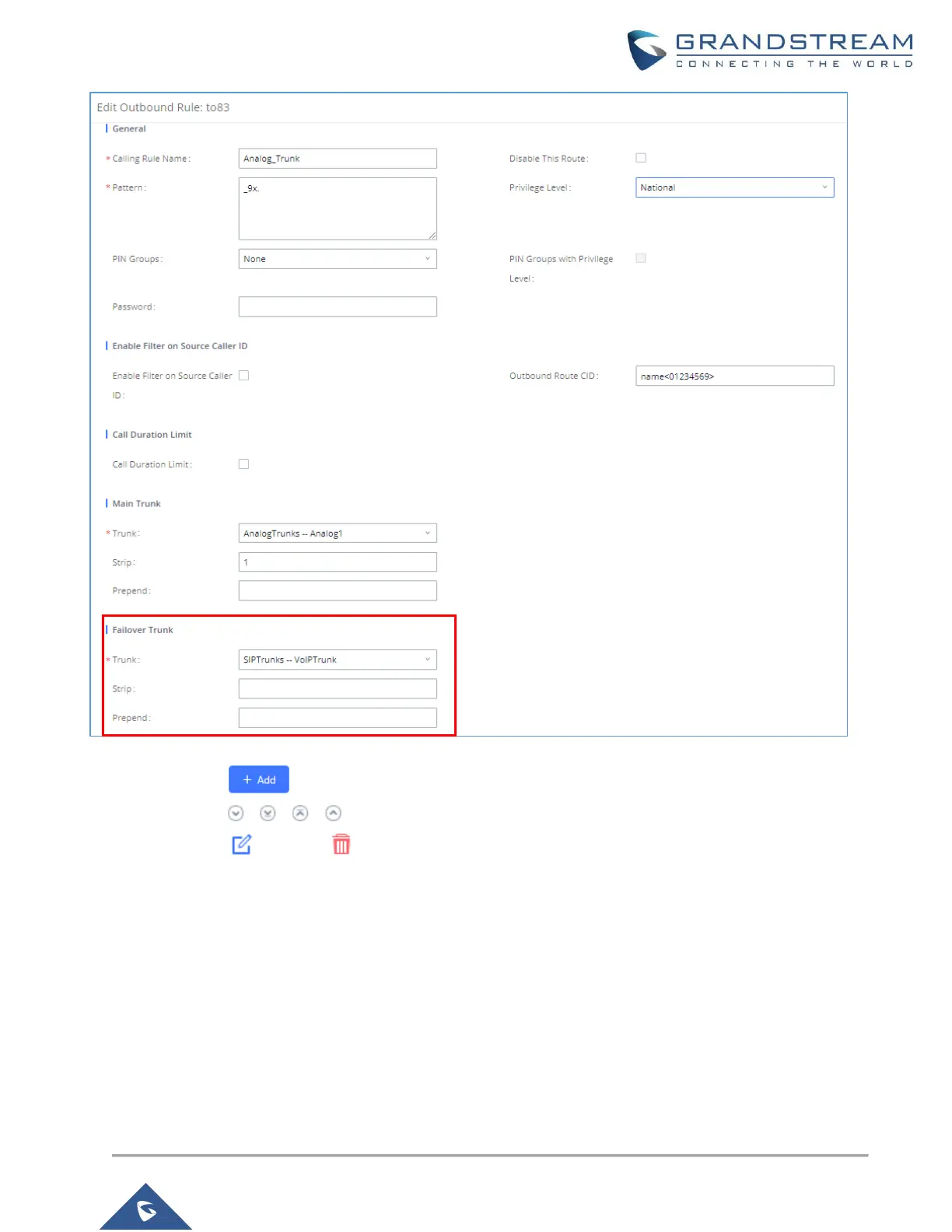 7. Click on to edit, or to delete the Trunk from Failover list.