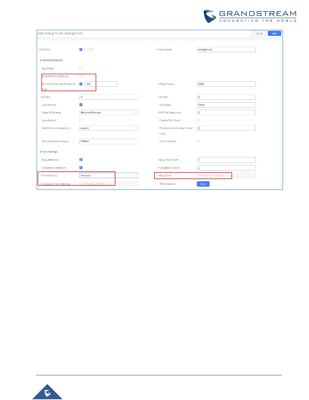 3. Make a call to FXO port, answer the call and keep it for a few seconds, then Hang-up from analog side.
