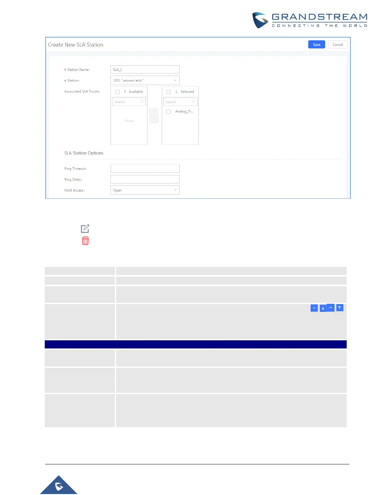 Click on to edit the SLA Station. The following table shows the SLA Station configuration parameters.