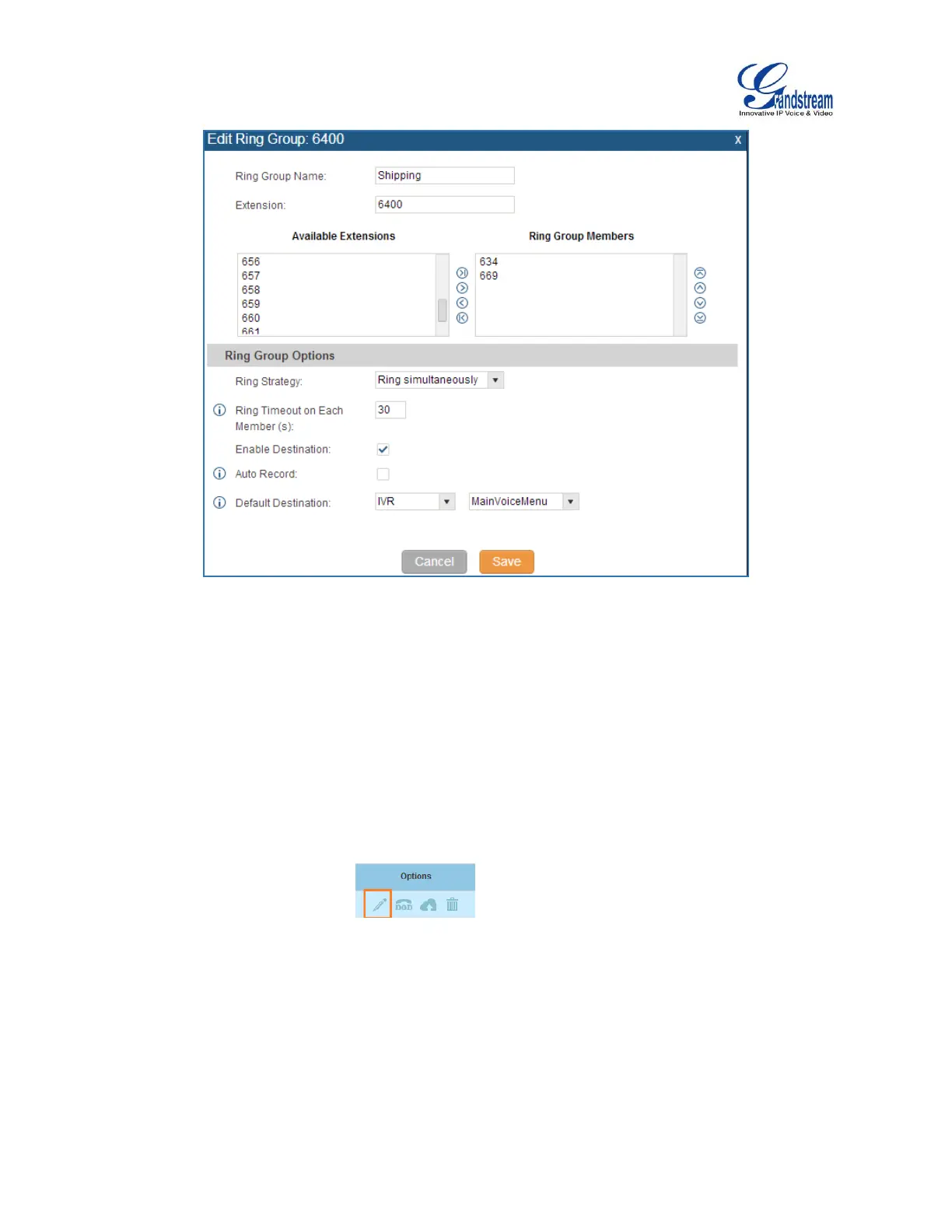 Remote extensions from the peer trunk of a remote UCM6100 can be included in the ring group with local