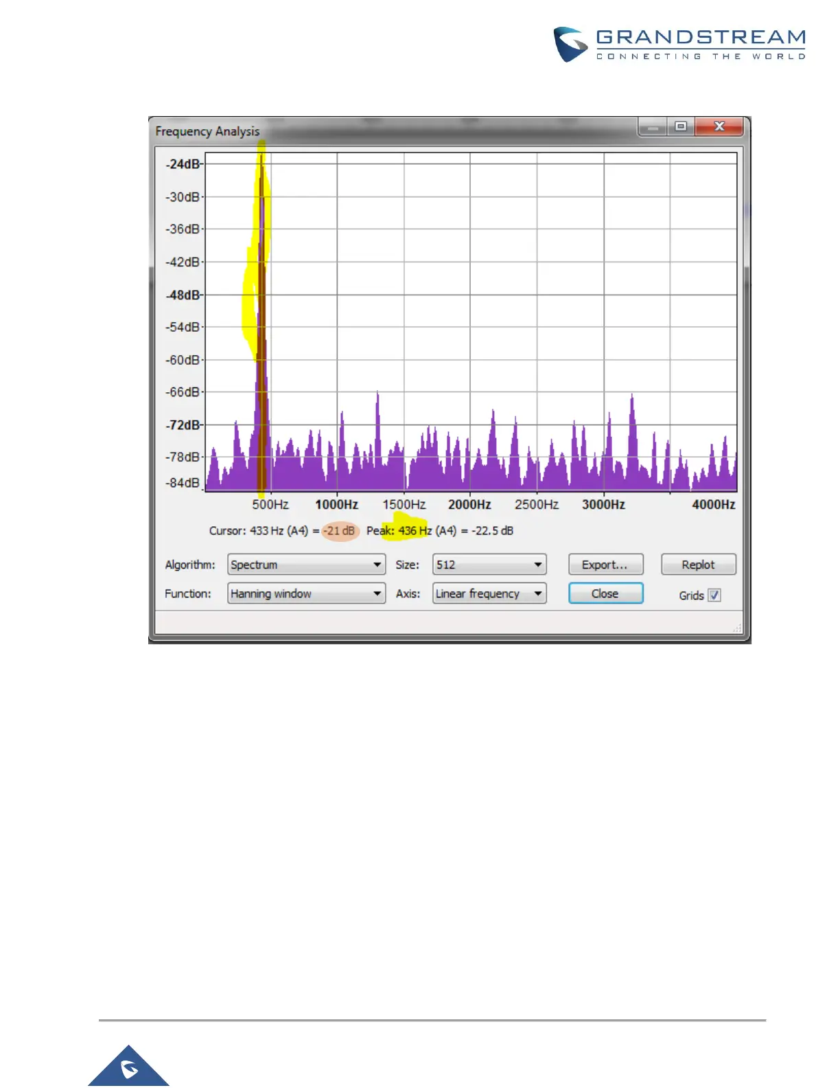 In this example we have only one frequency Peak, hence the Busy tone frequencies are f1=436Hz@-