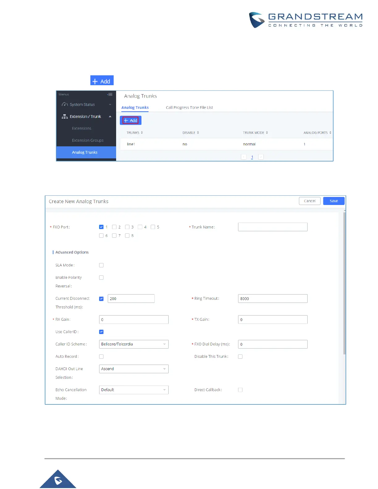 1. Go to Web GUI→PBX→Extension/Trunk→Analog Trunks.
