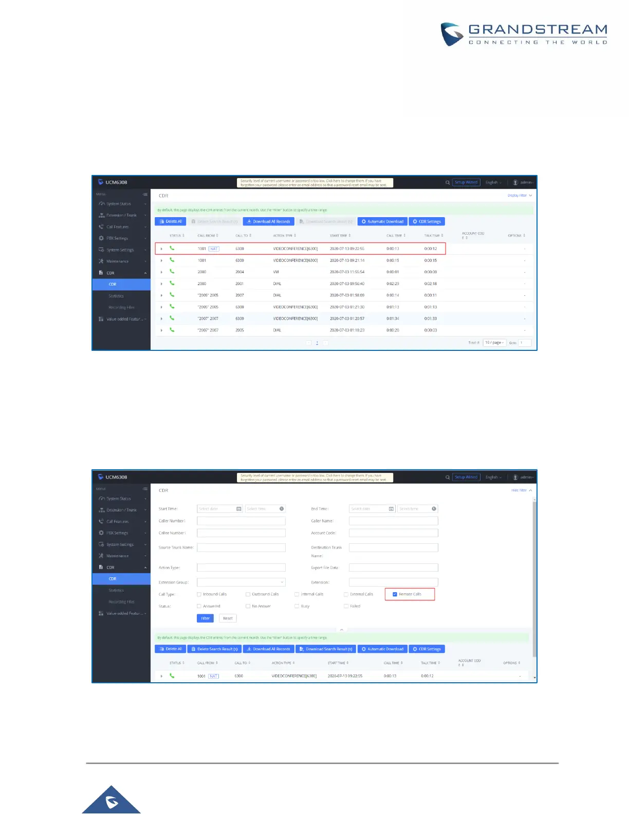 UCM6300 CDR can be accessed from UCM web GUI → CDR → CDR page. In “Call Type” field, click on