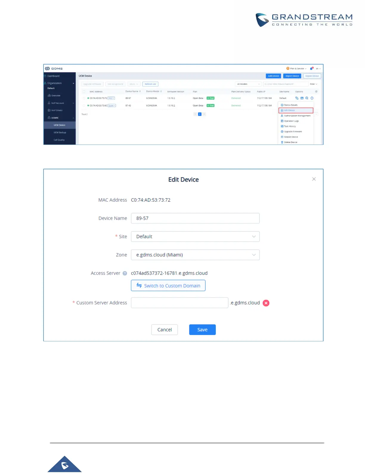 for UCM. For more information about configuring custom domain name on GDMS, please refer to GDMS
