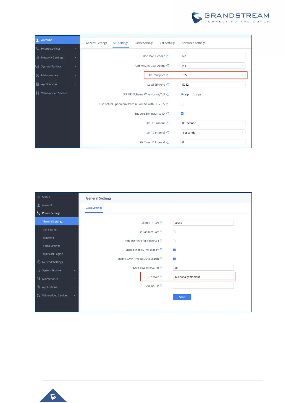 3. Go to phone’s Web UIPhone SettingsGeneral Settings, configure the STUN server to be