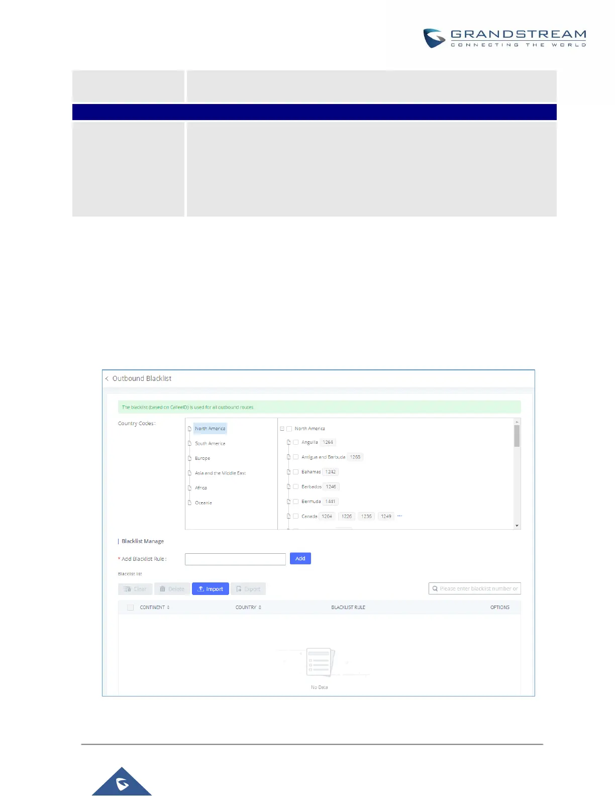 numbers or patterns, the outbound call will not be allowed. The outbound blacklist can be configured under UCM