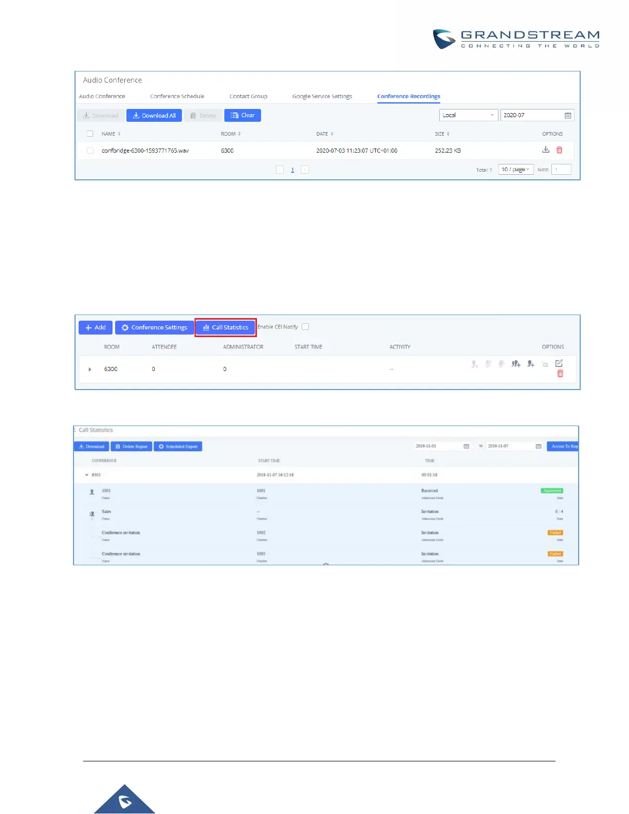 for offline viewing. The conference report page can be accessed by clicking on the Call Statistics button on the