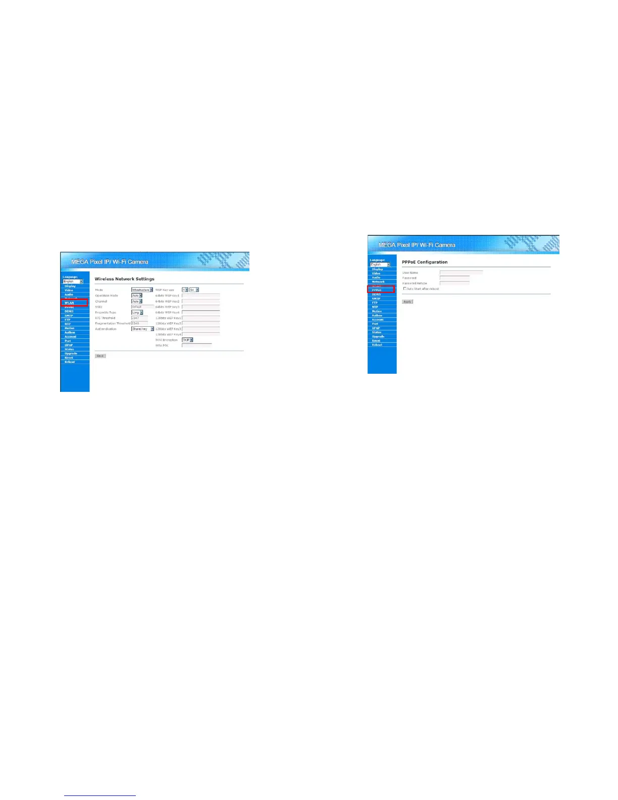 WEP Key Setting: Mega Pixel Wi-Fi Camera supports 64bit and 128bit WEP encryption. Please