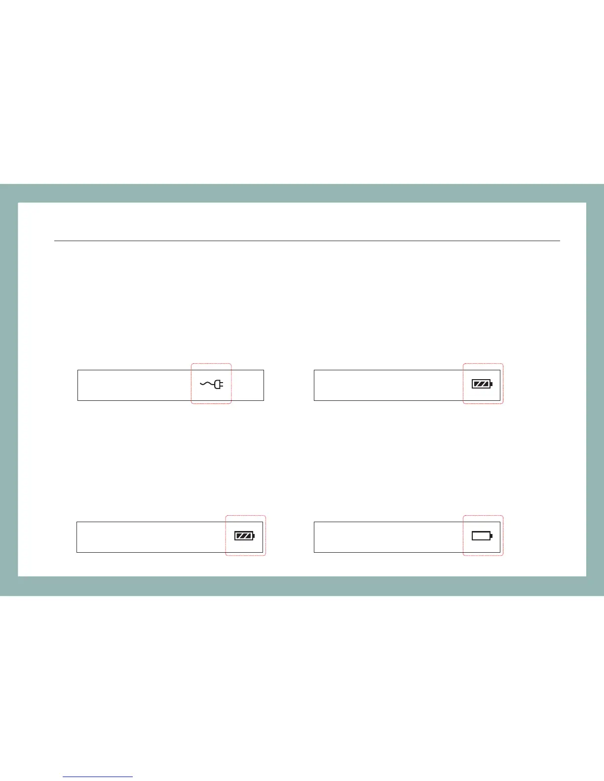 There are battery indicator and power plug on the screen to show the power supply.