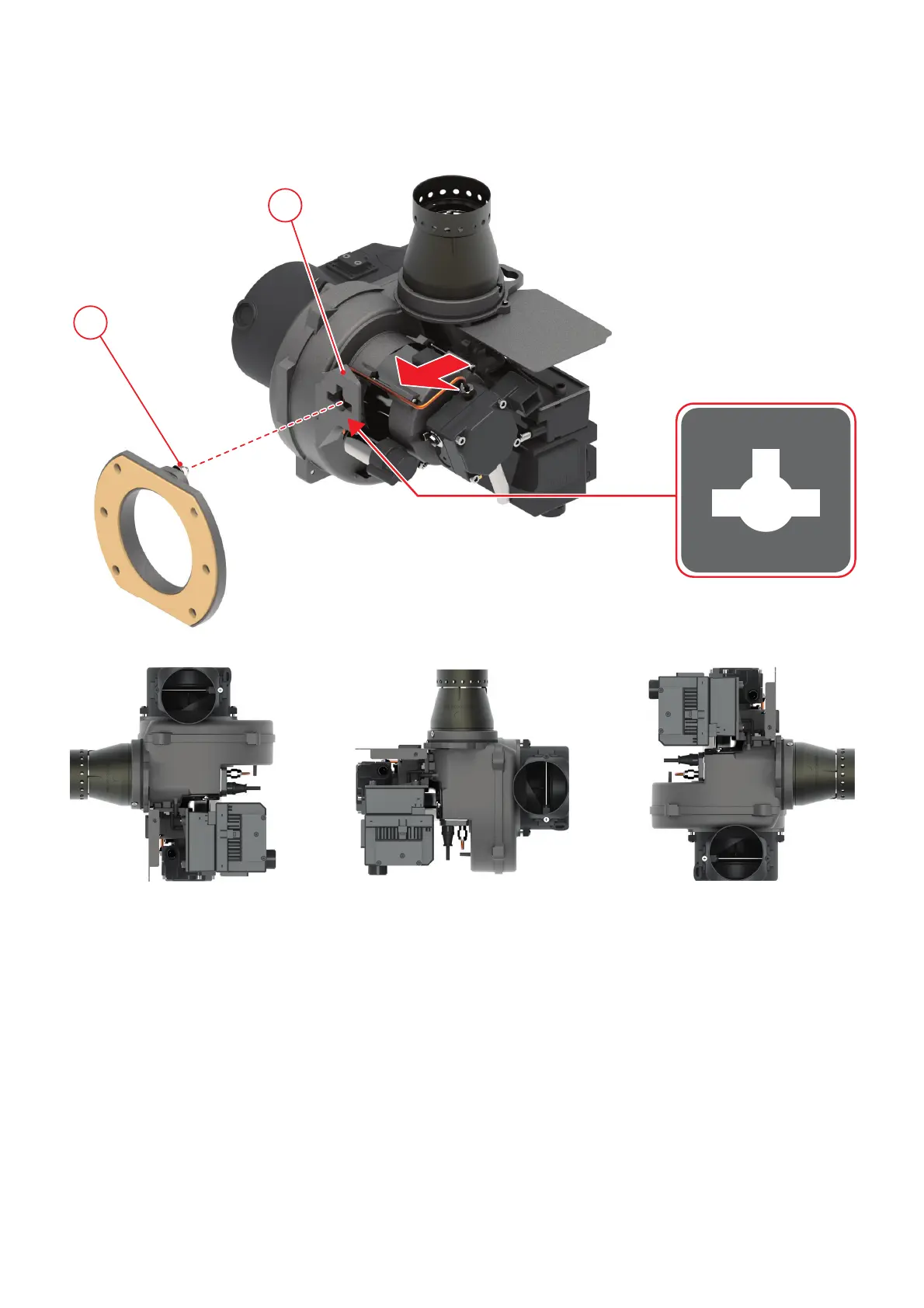 To facilitate maintenance operations, fi x the burner to the boiler by