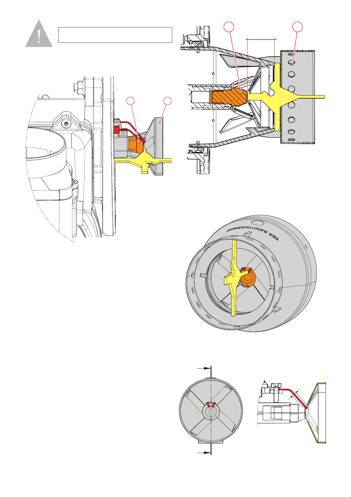 - check the distance between the diffuser (1) and the nozzle (2) as