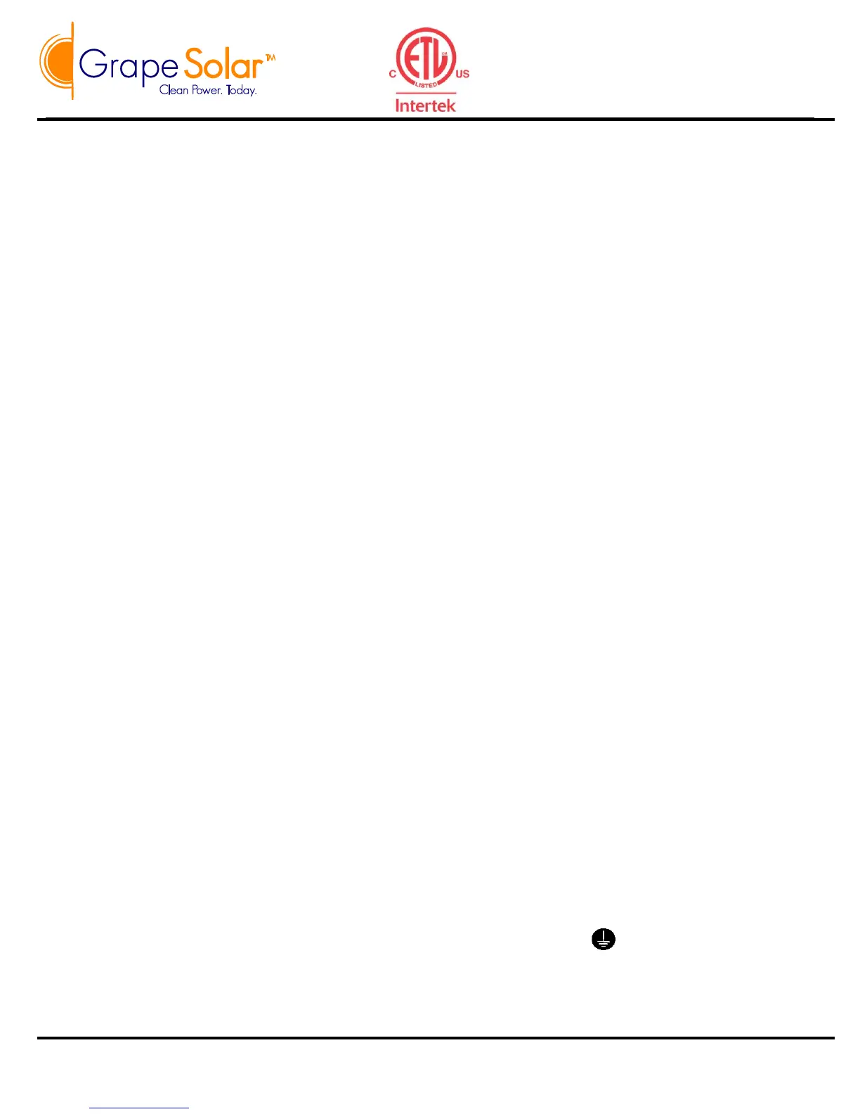 4.3 Each PV module has 2 holes on back frame with grounding sign . Grape Solar recommends