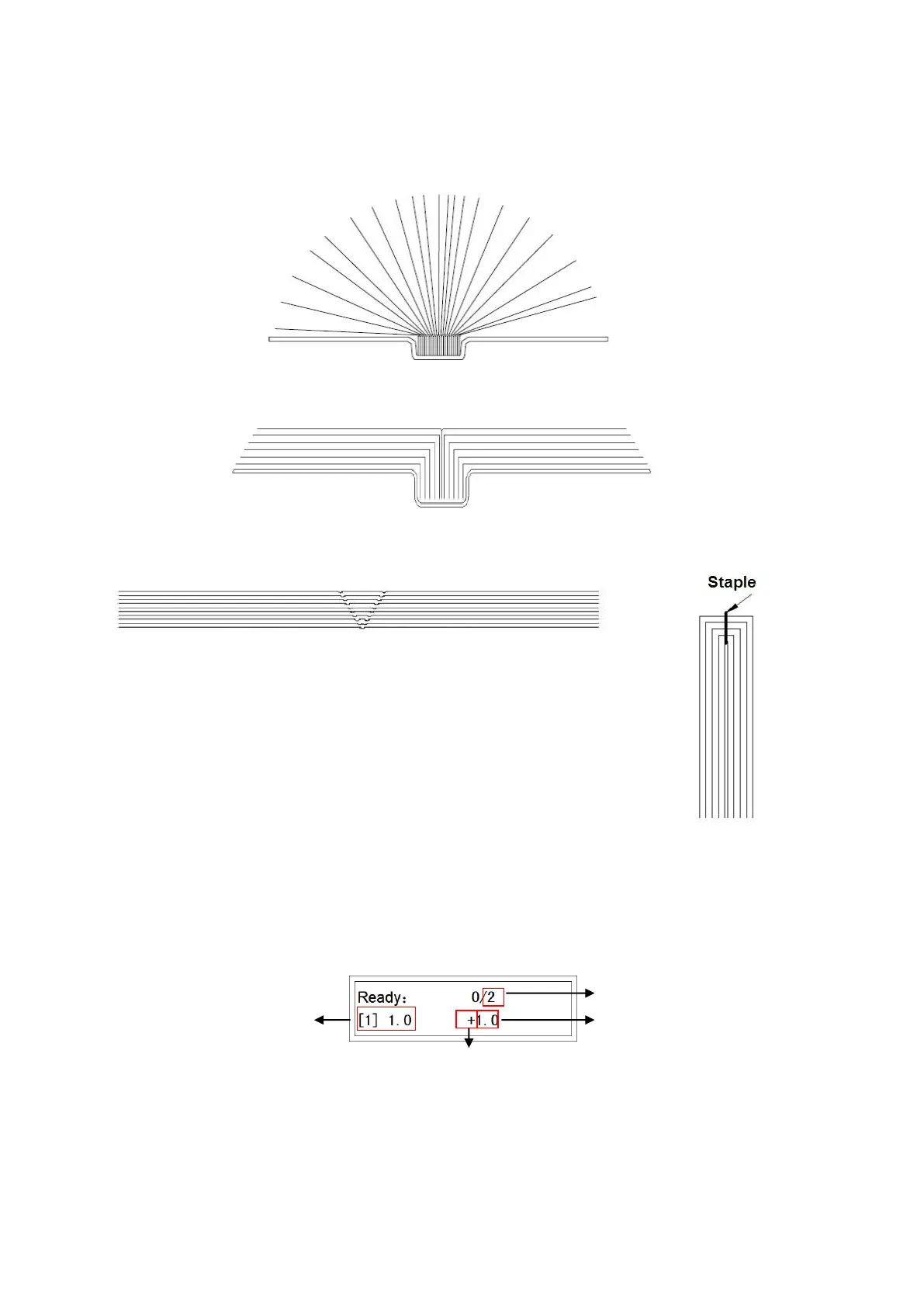 being saddle stitched. Define the first position, crease gap and the