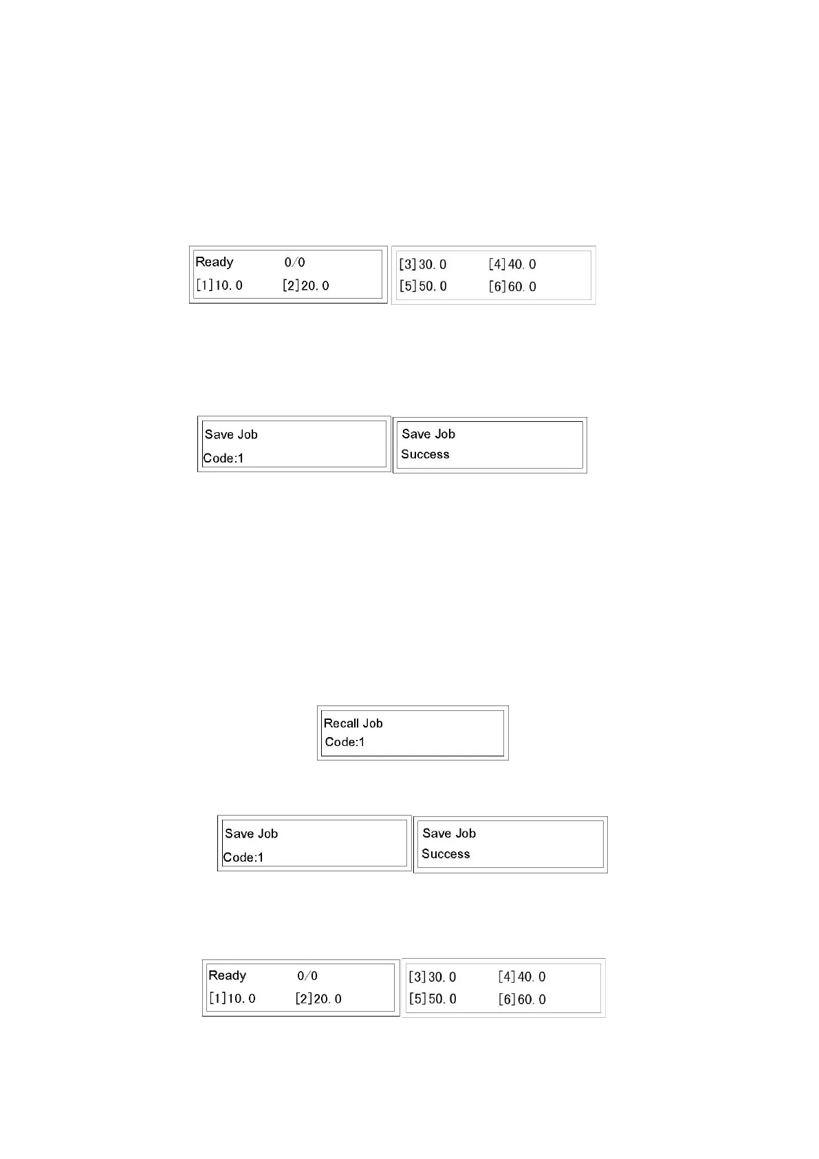 Input a number between 1-30 to recall the job. (Job 1 according to example).