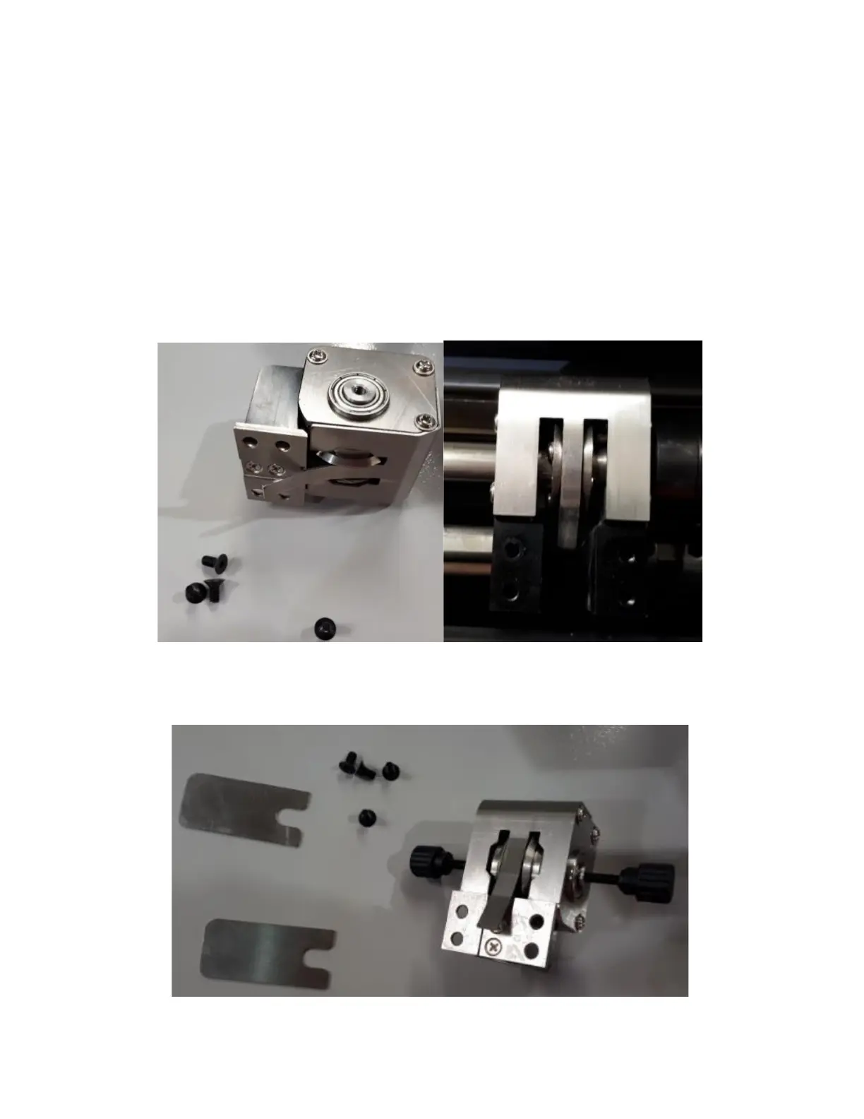 8. When all dust and debris has been removed from the upper and lower assemblies, install the thumb screws