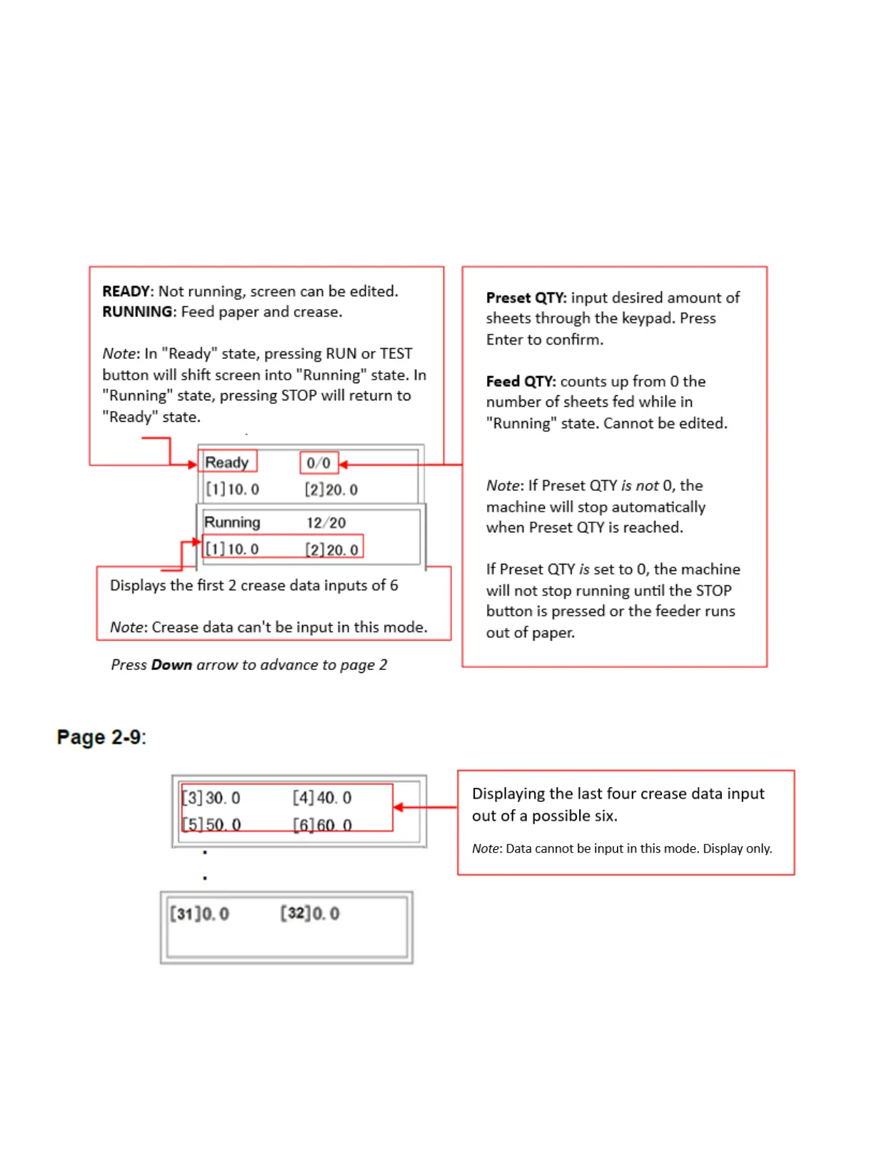 Press Down arrow to advance to pages 3 through 9