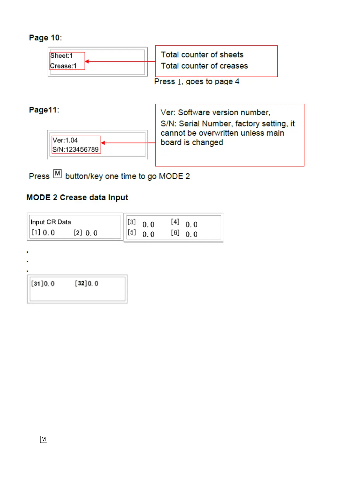 crease is entered the screen will automatically jump to MODE 1, page