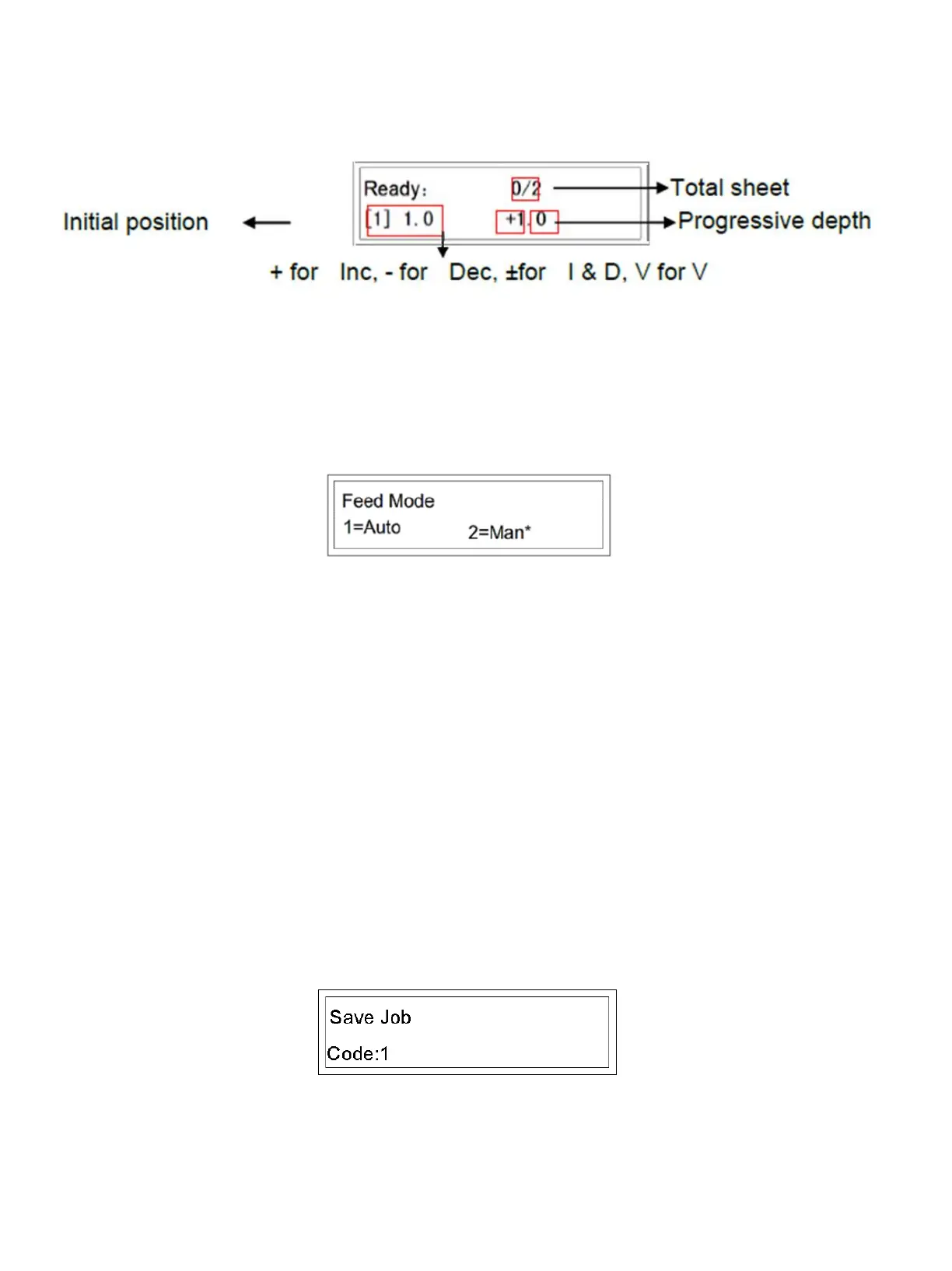 The user can choose Auto feeding mode or Manual feeding mode. Press 1 to choose Auto or 2 to choose