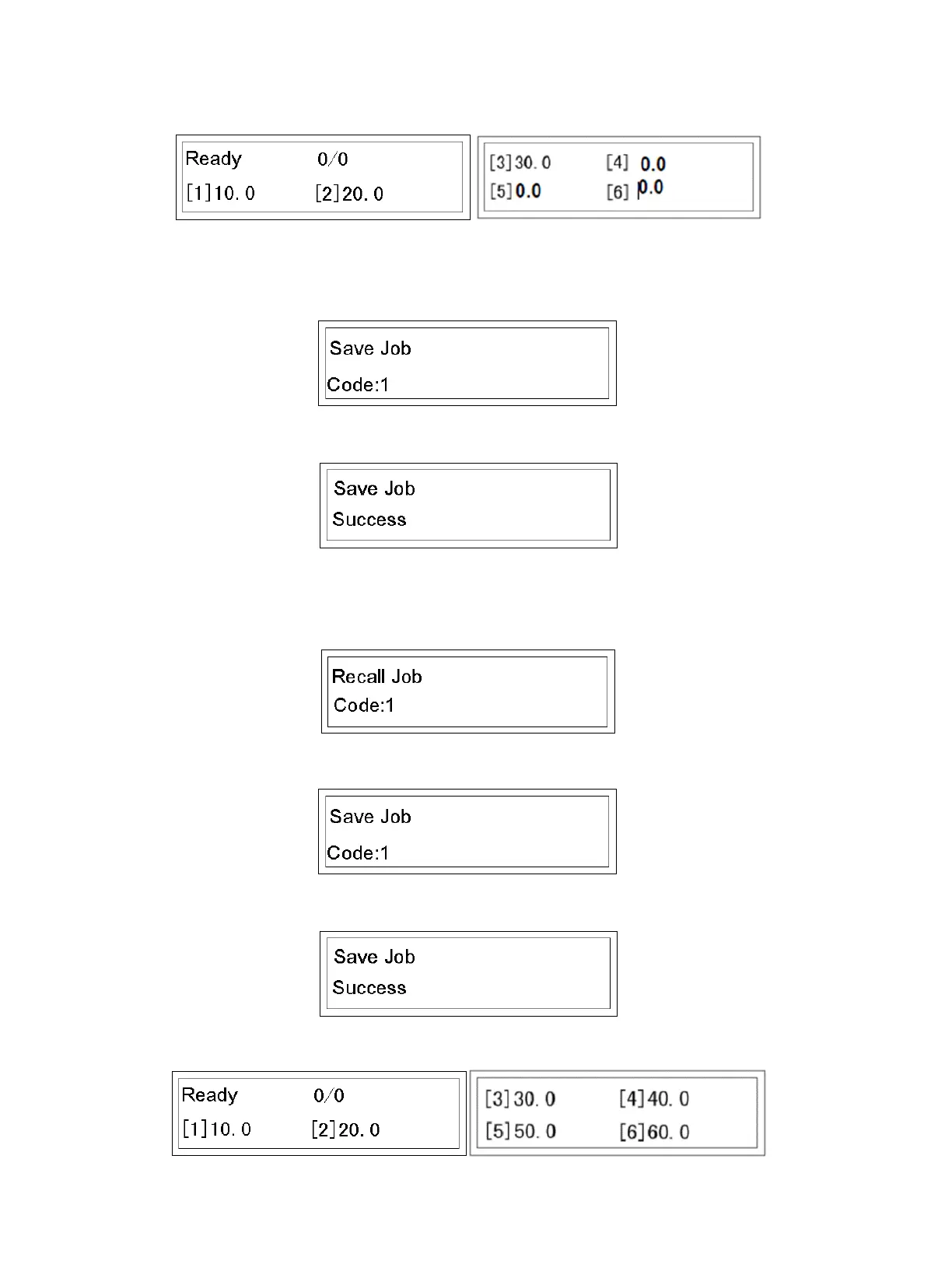 • Screen jumps to main operation MODE. The data becomes 10, 20, 30 as determined by previous data input.