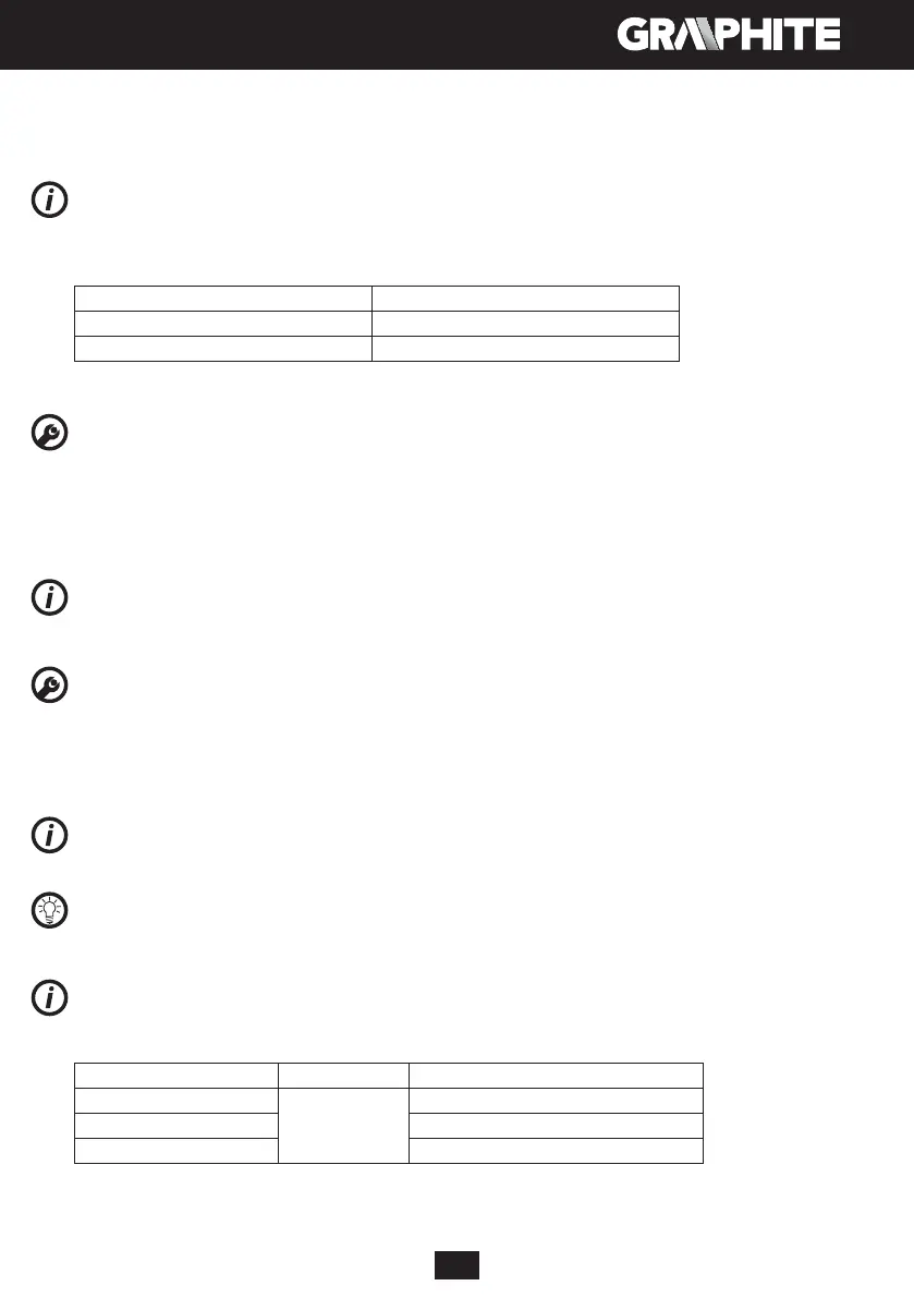 kovu se doporučuje mazání. Pro volbu nejvhodnějšího zdvihu kyvného pohybu viz níže uvedená tabulka.