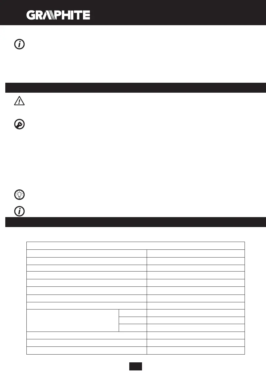 to work with no load for 3–5 minutes. Sharp working tools improve work eciency. Clean ventilation holes
