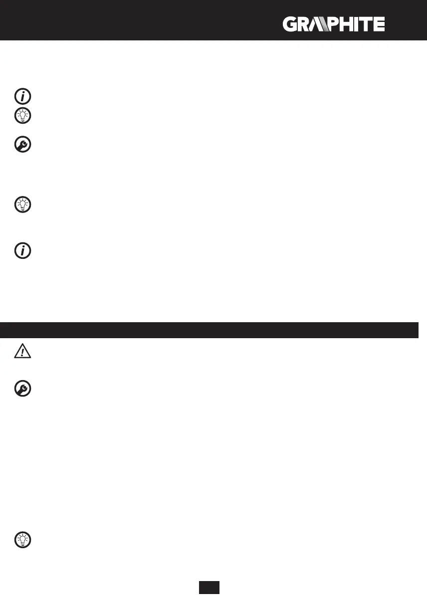 cowała bez obciążenia przez 3-5 minut. Naostrzone narzędzia robocze zwiększają efektywność pracy. Nie