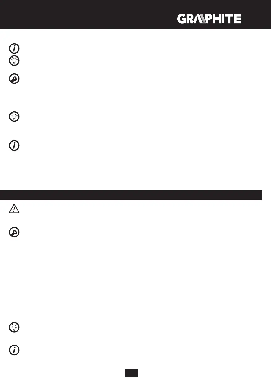 cowała bez obciążenia przez 2-3 minut. Naostrzone narzędzia robocze zwiększają efektywność pracy. Nie