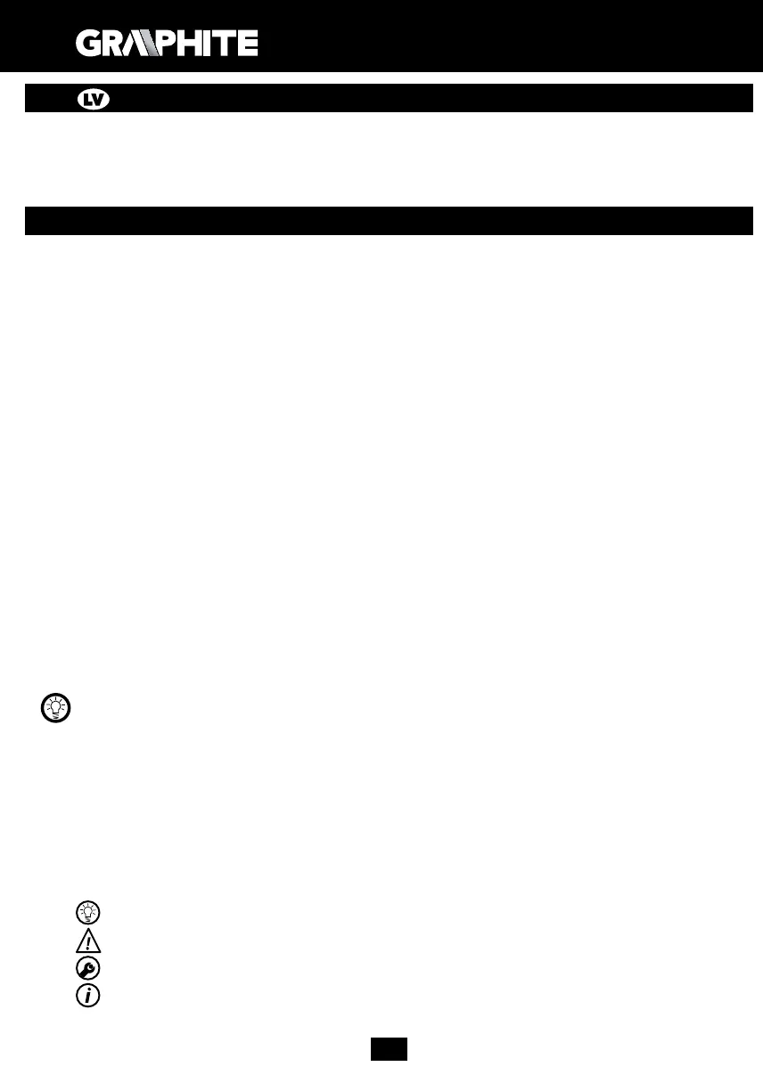 UZMANĪBU! PIRMS UZSĀKT LIETOT ELEKTROINSTRUMENTU, NEPIECIEŠAMS UZMANĪGI IZLASĪT DOTO